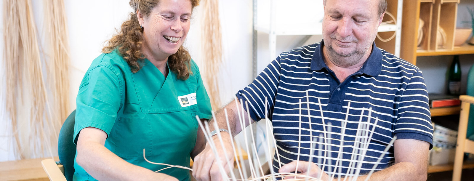 Ein umfangreiches Programm der Ergotherapie trägt dazu bei, frühzeitig den Heilungsprozess aktiv zu fördern. So werden verschiedene Materialien und Hilfsmittel in die Arbeit der ErgotherapeutInnen mit einbezogen, um mit den PatientInnen alltägliche Gebrauchsbewegungen zu üben. Ziel ist es, die PatientInnen zu weitestgehender Selbstständigkeit bei allen Aktivitäten im Alltag zu führen.